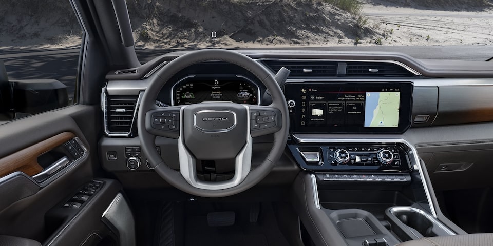 The New 2024 Sierra Heavy Duty offers the most trailering-assistance technologies in its class,†and this available advanced tech allows you to trailer with enhanced confidence and improved views.
