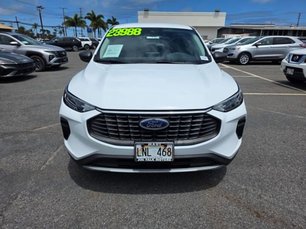 This Ford Escape has many features and is well equipped including Equipment Group 200A, 3.81 Axle Ratio, 4-Wheel Disc Brakes, 6 Speakers, ABS brakes, Air Conditioning, Alloy wheels, AM/FM radio: SiriusXM, AM/FM Stereo, Auto High-beam Headlights, Automatic temperature control, Brake assist, Bumpers: body-color, Compass, Delay-off headlights, Driver door bin, Driver vanity mirror, Dual front impact airbags, Dual front side impact airbags, Electronic Stability Control, Emergency communication system: SYNC 4 911 Assist, Exterior Parking Camera Rear, FordPass Connect, Four wheel independent suspension, Front anti-roll bar, Front Bucket Seats, Front Center Armrest, Front dual zone A/C, Front License Plate Bracket, Front reading lights, Fully automatic headlights, Illuminated entry, Knee airbag, Low tire pressure warning, Occupant sensing airbag, Outside temperature display, Overhead airbag, Overhead console, Panic alarm, Passenger door bin, Passenger vanity mirror, Power door mirrors, Power driver seat, Power Liftgate, Power steering, Power windows, Radio data system, Rear anti-roll bar, Rear reading lights, Rear seat center armrest, Rear window defroster, Rear window wiper, Remote keyless entry, Speed control, Speed-sensing steering, Speed-Sensitive Wipers, Split folding rear seat, Spoiler, Steering wheel mounted audio controls, SYNC 4, Tachometer, Telescoping steering wheel, Tilt steering wheel, Traction control, Trip computer, Unique Cloth Front Bucket Seats, Variably intermittent wipers, and Wheels: 17 Shadow Silver-Painted Aluminum. Oxford White 2024 Ford Escape Active FWD 8-Speed Automatic 1.5L EcoBoostRecent Arrival! Odometer is 6045 miles below market average! 27/34 City/Highway MPG