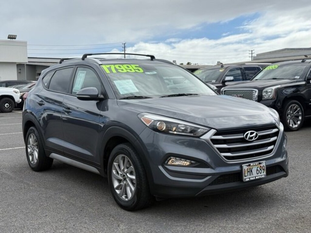 This Hyundai Tucson has many features and is well equipped including Option Group 01, 17 Alloy Wheels, 4-Wheel Disc Brakes, 8 Speakers, ABS brakes, Air Conditioning, Alloy wheels, AM/FM radio: SiriusXM, Apple CarPlay & Android Auto, Auto-dimming Rear-View mirror, Automatic temperature control, Axle Ratio: 3.51, Brake assist, Bumpers: body-color, Cargo Net, Cargo Tray, Carpeted Floor Mats, Compass, Delay-off headlights, Driver door bin, Driver vanity mirror, Dual front impact airbags, Dual front side impact airbags, Electronic Stability Control, Emergency communication system: Blue Link, Exterior Parking Camera Rear, First Aid Kit, Four wheel independent suspension, Front anti-roll bar, Front Bucket Seats, Front Center Armrest, Front dual zone A/C, Front fog lights, Front reading lights, Fully automatic headlights, Garage door transmitter: HomeLink, Heated door mirrors, Heated Front Bucket Seats w/Power Driver's Seat, Heated front seats, Illuminated entry, Leather Seat Trim, Low tire pressure warning, Occupant sensing airbag, Outside temperature display, Overhead airbag, Overhead console, Panic alarm, Passenger door bin, Passenger vanity mirror, Power door mirrors, Power passenger seat, Power steering, Power windows, Radio: Infinity AM/FM/HD Radio/MP3 Audio System, Rear anti-roll bar, Rear seat center armrest, Rear window defroster, Rear window wiper, Remote keyless entry, Roof Rack Cross Rails, Roof rack: rails only, Security system, Speed control, Speed-sensing steering, Split folding rear seat, Spoiler, Steering wheel mounted audio controls, Tachometer, Telescoping steering wheel, Tilt steering wheel, Traction control, Trip computer, Turn signal indicator mirrors, and Variably intermittent wipers. Coliseum Gray 2017 Hyundai Tucson SE Plus FWD 6-Speed Automatic with Shiftronic 2.0L DOHCRecent Arrival! Odometer is 49891 miles below market average! 23/30 City/Highway MPGAwards:* 2017 KBB.com 10 Best SUVs Under $25,000 * 2017 KBB.com 10 Most Awarded BrandsReviews:* Turbocharged engine delivers peppy acceleration and good fuel economy; plenty of advanced safety and infotainment features are available; comfortable ride on rough roads; top safety scores. Source: Edmunds