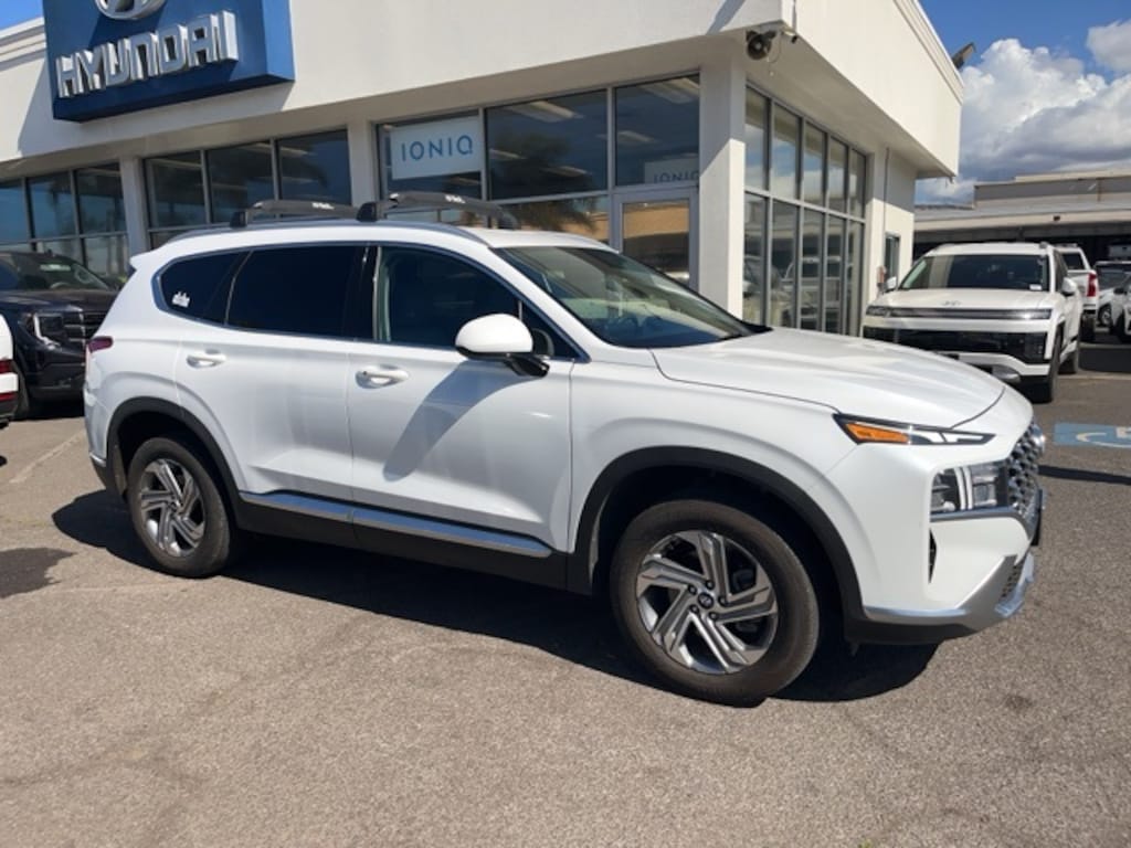 This Hyundai Santa Fe has many features and is well equipped including Option Group 01, AWD, Black Cloth, 18" x 7.5J Alloy Wheels, 4-Wheel Disc Brakes, 6 Speakers, ABS brakes, Air Conditioning, Alloy wheels, AM/FM radio: SiriusXM, Apple CarPlay & Android Auto, Auto High-beam Headlights, Axle Ratio: 4.081, Brake assist, Bumpers: body-color, Cargo Cover/Screen, Cargo Net, Cargo Tray, Carpeted Floor Mats, Delay-off headlights, Driver door bin, Driver vanity mirror, Dual front impact airbags, Dual front side impact airbags, Electronic Stability Control, Emergency communication system, Exterior Parking Camera Rear, Four wheel independent suspension, Front anti-roll bar, Front Bucket Seats, Front Center Armrest, Front reading lights, Fully automatic headlights, Heated door mirrors, Heated Front Bucket Seats, Heated front seats, Illuminated entry, Low tire pressure warning, Occupant sensing airbag, Outside temperature display, Overhead airbag, Overhead console, Panic alarm, Passenger door bin, Passenger vanity mirror, Power door mirrors, Power driver seat, Power steering, Power windows, Radio: AM/FM Display Audio, Rear anti-roll bar, Rear seat center armrest, Rear window defroster, Rear window wiper, Remote keyless entry, Security system, Speed control, Speed-sensing steering, Split folding rear seat, Spoiler, Steering wheel mounted audio controls, Tachometer, Telescoping steering wheel, Tilt steering wheel, Traction control, Trip computer, Variably intermittent wipers, and YES Essentials Stain-Resistant Cloth Seat Trim. Quartz White 2022 Hyundai Santa Fe SEL AWD 8-Speed Automatic with SHIFTRONIC 2.5L I4 AWD, Black Cloth.