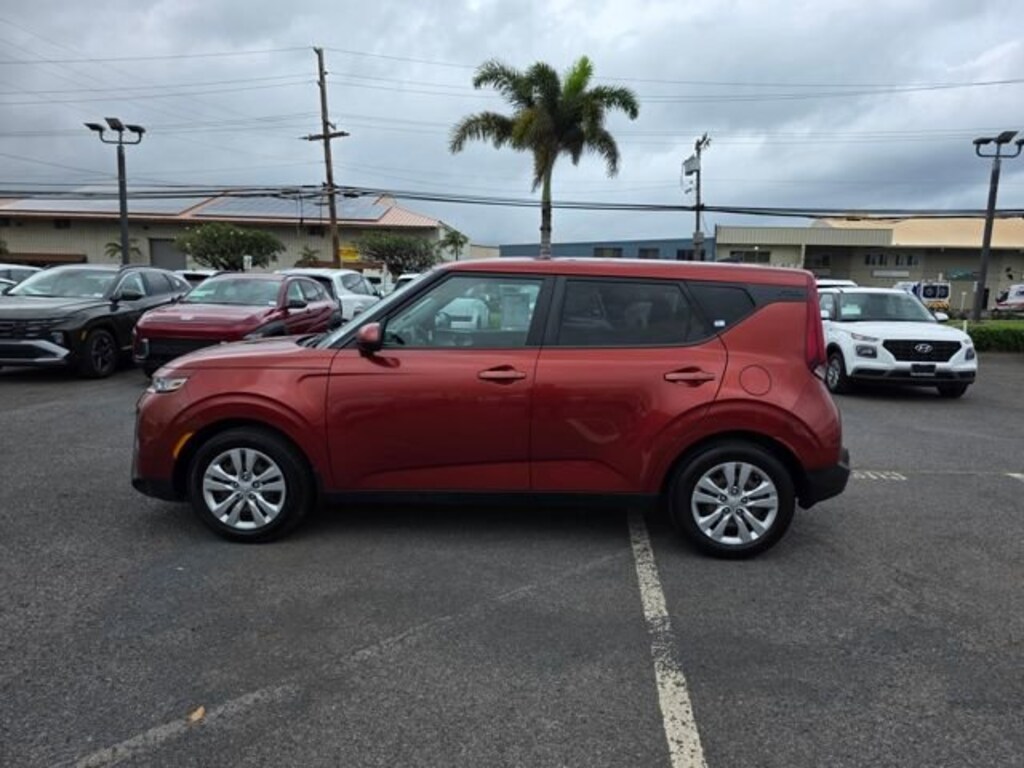This Kia Soul has many features and is well equipped including 4-Wheel Disc Brakes, 6 Speakers, ABS brakes, Air Conditioning, AM/FM radio, Apple CarPlay & Android Auto, Brake assist, Bumpers: body-color, Carpeted Floor Mats, Cloth Seat Trim, Delay-off headlights, Driver door bin, Driver vanity mirror, Dual front impact airbags, Dual front side impact airbags, Electronic Stability Control, Exterior Parking Camera Rear, Front anti-roll bar, Front Bucket Seats, Front Center Armrest, Front reading lights, Front wheel independent suspension, Fully automatic headlights, Low tire pressure warning, Occupant sensing airbag, Outside temperature display, Overhead airbag, Overhead console, Passenger door bin, Passenger vanity mirror, Power door mirrors, Power steering, Power windows, Radio: AM/FM/MP3 Audio System, Rear window defroster, Rear window wiper, Remote keyless entry, Speed control, Speed-sensing steering, Split folding rear seat, Steering wheel mounted audio controls, Tachometer, Telescoping steering wheel, Tilt steering wheel, Traction control, Trip computer, Variably intermittent wipers, and Wheels: 16 x 6.5 Steel. Mars Orange 2021 Kia Soul LX FWD CVT 2.0L I4 MPI DOHC 16V LEV3-SULEV30 147hp