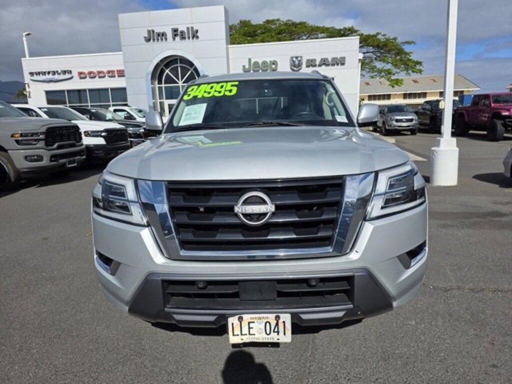 This Nissan Armada has many features and is well equipped including Captain's Chairs Package (2nd Row Captain's Chairs and 2nd Row Center Console w/Padded Armrest), 4WD, 13 Speakers, 2.94 Axle Ratio, 20 Painted Alloy Wheels, 3rd Row Carpeted Floor Mats - Captain Seat, 3rd row seats: split-bench, 4-Wheel Disc Brakes, ABS brakes, Air Conditioning, Alloy wheels, AM/FM radio: SiriusXM, Anti-whiplash front head restraints, Auto High-beam Headlights, Auto tilt-away steering wheel, Auto-dimming door mirrors, Auto-dimming Rear-View mirror, Auto-leveling suspension, Automatic temperature control, Brake assist, Bumpers: body-color, Delay-off headlights, Driver door bin, Driver vanity mirror, Dual front impact airbags, Dual front side impact airbags, Electronic Stability Control, Emergency communication system: NissanConnect Services, Exterior Parking Camera Rear, Four wheel independent suspension, Front anti-roll bar, Front Bucket Seats, Front Center Armrest, Front dual zone A/C, Front fog lights, Front reading lights, Fully automatic headlights, Garage door transmitter: HomeLink, Heated door mirrors, Heated Front Bucket Seats, Heated front seats, Illuminated entry, Leather Seat Trim, Leather Shift Knob, Low tire pressure warning, Memory seat, Navigation System, NissanConnect featuring Apple CarPlay and Android Auto, Occupant sensing airbag, Outside temperature display, Overhead airbag, Overhead console, Panic alarm, Passenger door bin, Passenger vanity mirror, Power door mirrors, Power driver seat, Power Liftgate, Power moonroof, Power passenger seat, Power steering, Power windows, Radio: NissanConnect w/SiriusXM, Rear air conditioning, Rear anti-roll bar, Rear reading lights, Rear seat center armrest, Rear window defroster, Rear window wiper, Reclining 3rd row seat, Remote keyless entry, Security system, Speed control, Speed-sensing steering, Speed-Sensitive Wipers, Split folding rear seat, Spoiler, Steering wheel memory, Steering wheel mounted audio controls, Tachometer, Telescoping steering wheel, Tilt steering wheel, Traction control, Trip computer, Turn signal indicator mirrors, Variably intermittent wipers, and Voltmeter. Brilliant Silver Metallic 2021 Nissan Armada SL 4WD 7-Speed Automatic 5.6L V8 DOHC 32V LEV3-ULEV125 400hp 4WD.