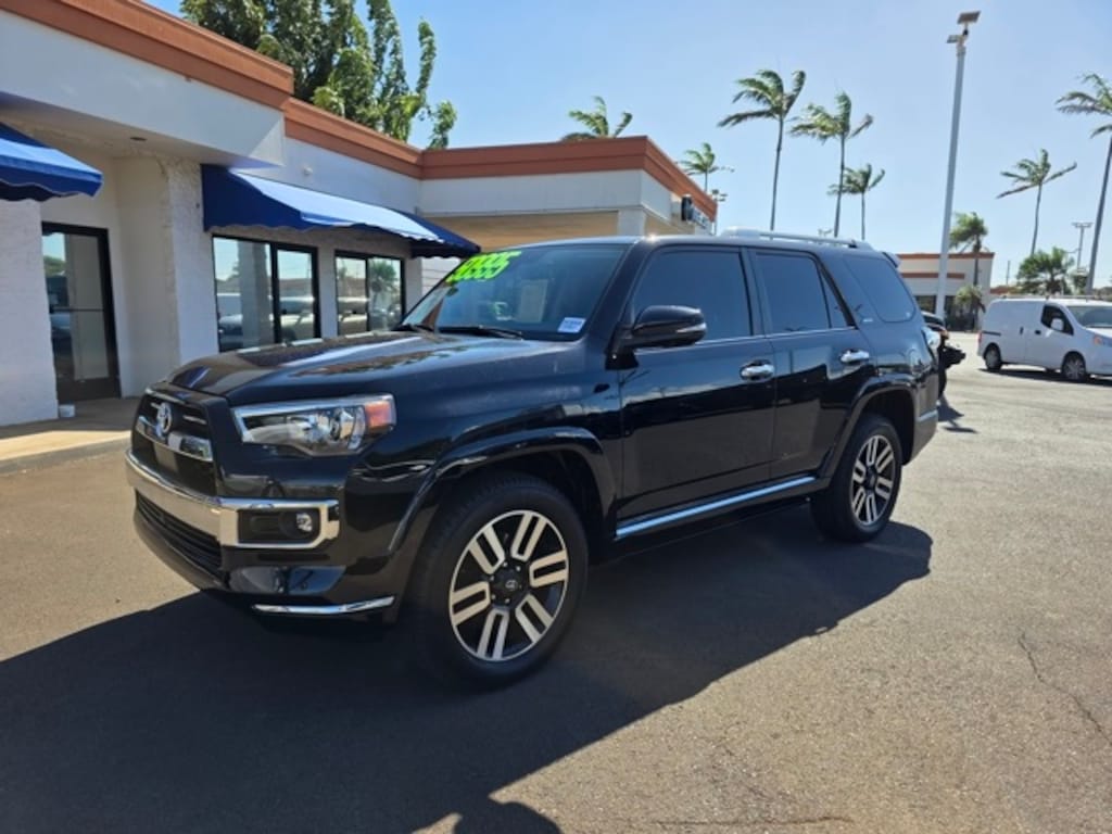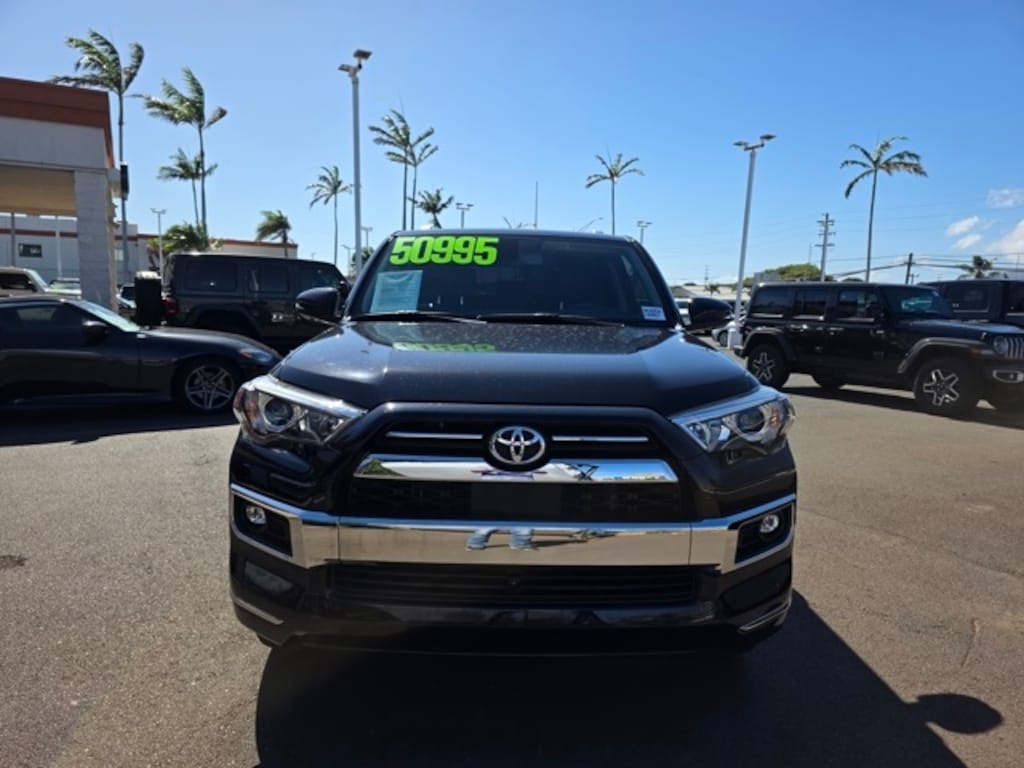 This Toyota 4Runner has many features and is well equipped including 4WD, Black/Graphite Leather, 15 Speakers, 3.727 Axle Ratio, 4-Wheel Disc Brakes, ABS brakes, Air Conditioning, Alloy wheels, AM/FM radio: SiriusXM, Anti-whiplash front head restraints, Apple CarPlay/Android Auto, Auto High-beam Headlights, Auto-dimming Rear-View mirror, Automatic temperature control, Brake assist, Bumpers: body-color, Compass, Delay-off headlights, Driver door bin, Driver vanity mirror, Dual front impact airbags, Dual front side impact airbags, Dual Zone Auto Climate Control, Electronic Stability Control, Emergency communication system: Safety Connect (1-year trial), Front anti-roll bar, Front Bucket Seats, Front Center Armrest, Front dual zone A/C, Front fog lights, Front reading lights, Front wheel independent suspension, Fully automatic headlights, Garage Door Opener, Garage door transmitter: HomeLink, Heated & Ventilated Front Bucket Seats, Heated door mirrors, Heated front seats, Heated Outside Rear-View Mirrors, Illuminated entry, Knee airbag, Leather Seat Trim, Low tire pressure warning, Memory seat, Moonroof w/Tilt Up & Slide, Navigation System, Occupant sensing airbag, Outside temperature display, Overhead airbag, Overhead console, Panic alarm, Panoramic Back Monitor, Passenger door bin, Passenger vanity mirror, Power door mirrors, Power driver seat, Power moonroof, Power passenger seat, Power steering, Power windows, Radio: Premium Audio w/JBL, Rear anti-roll bar, Rear seat center armrest, Rear window defroster, Rear window wiper, Remote keyless entry, Security system, Silver Roof Rails, Speed control, Speed-sensing steering, Split folding rear seat, Spoiler, Steering wheel mounted audio controls, Tachometer, Telescoping steering wheel, Tilt steering wheel, Traction control, Trip computer, Turn signal indicator mirrors, Variably intermittent wipers, Ventilated front seats, and Wheels: 20" Unique Dual 6-Spoke Alloy. Midnight Black Metallic 2023 Toyota 4Runner Limited 4WD 5-Speed with ECT 4.0L V6 DOHC 24V 4WD, Black/Graphite Leather.